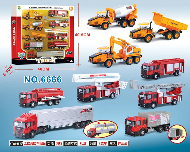 REVIEW TOP SELLER Alloy Engineering Fire Truck Packaged Combination Gift Box Car Model Multi-functional Hot Selling T