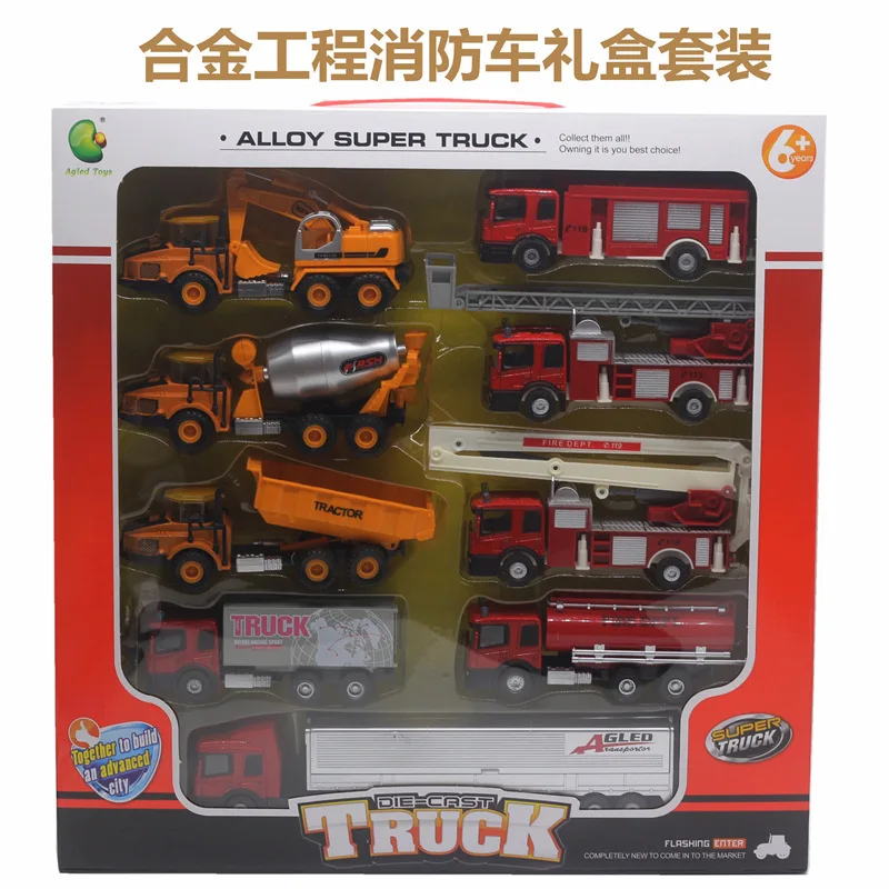 Alloy Engineering Fire Truck Packaged Combination Gift Box Car Model Multi-functional Hot Selling T
